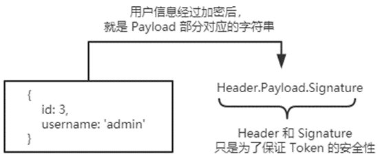 - 当生成 JWT 字符串的时候,需要使用 secret 密钥对用户的信息进行加密,最终得到加密好的 JWT 字符串